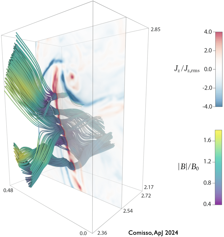 From the heliosphere to extragalactic plasmas, turbulence occurs in an extraordinarily wide range of circumstances. It is characterized by a broad spectrum of interacting scales, with energy transfer typically proceeding from large scales (energy-containing range) to small scales (dissipation range) through a cascade process. The chaotic nature of turbulent fluctuations undermines deterministic descriptions, yet they exhibit statistical patterns that can be systematically explored. Understanding the statistical properties of turbulence is crucial for addressing numerous astrophysical challenges, such as the transport of cosmic rays, the Sun’s coronal heating problem, and the heating of accretion disks around black holes. My research focuses on advancing our understanding of plasma turbulence through analytical analyses and state-of-the-art direct numerical simulations that leverage a variety of plasma model equations. The primary objective is to establish a robust theoretical framework and predictive capabilities for its statistical properties, applicable across diverse astrophysical contexts.